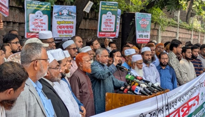 মঙ্গলবার দুপুরে রাজধানীর মৎস্য ভবন মোড়ে আয়োজিত এক মানববন্ধনে তিনি অন্তর্বর্তী সরকারকে এই ষড়যন্ত্র বন্ধের হুঁশিয়ারি দেন।