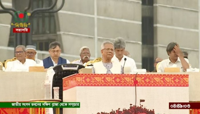 বিকাল সাড়ে চারটার দিকে অনুষ্ঠানস্থলে আসেন অধ্যাপক মুহাম্মদ ইউনূস। এ সময় তার সঙ্গে ছিলেন আইন উপদেষ্টা আসিফ নজরুল, সংস্কৃতি বিষয়ক উপদেষ্টা মোস্তফা সরয়ার ফারুকী ও জাতীয় ঐকমত্য কমিশনের সহ–সভাপতি আলী রীয়াজ।