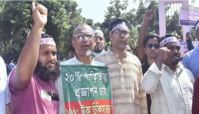 টানা আন্দোলনের মুখে বেসরকারি শিক্ষা প্রতিষ্ঠানে কর্মরত এমপিওভুক্ত শিক্ষক-কর্মচারীদের বাড়ি ভাড়া ভাতা মূল বেতনের পাঁচ শতাংশ হারে (সর্বনিম্ন ২০০০ টাকা) দেওয়ার সিদ্ধান্ত নিয়েছে সরকার। আগামী ১ নভেম্বর থেকে এ হারে বাড়ি ভাড়া কার্যকর হবে। তবে শিক্ষকরা এ সিদ্ধান্ত প্রত্যাহার করে বাড়িভাড়া ২০ শতাংশ বাড়ানোর দাবিতে অনড় রয়েছেন। রবিবার (১৯ অক্টোবর) অর্থ মন্ত্রণালয় বাড়িভাড়া ৫ শতাংশ এ সম্মতি দিয়ে শিক্ষা মন্ত্রণালয়ের মাধ্যমিক ও উচ্চ শিক্ষা বিভাগের সচিব এবং কারিগরি ও মাদ্রাসা শিক্ষা বিভাগের সচিবের কাছে চিঠি পাঠিয়েছে। প্রসঙ্গত, ২০ শতাংশ বাড়ি ভাড়া, এক হাজার ৫০০ টাকা মেডিক্যাল ভাতা এবং কর্মচারীদের জন্য ৭৫ শতাংশ উৎসব ভাতার প্রজ্ঞাপণের দাবিতে গত ১২ অক্টোবর জাতীয় প্রেসক্লাব এবং ১৩ অক্টোবর থেকে কেন্দ্রীয় শহীদ মিনারে অবস্থান করছেন শিক্ষকরা। টানা কর্মসূচির অংশ হিসেবে আজ দুপুর ১২টায় শিক্ষা ভবন অভিমুখে শিক্ষকদের থালা-বাটি নিয়ে ভুখা মিছিলের কর্মসূচি রয়েছে। ভাড়িভাড়া নির্ধারণে শিক্ষা মন্ত্রণালয়কে দেওয়া অর্থ বিভাগের বেসরকারি শিক্ষা প্রতিষ্ঠানে কর্মরত এমপিওভুক্ত শিক্ষক-কর্মচারীদের বাড়ি ভাড়া ভাতা বৃদ্ধিতে অর্থ বিভাগের সম্মতি প্রদান’ শীর্ষক চিঠিতে বলা হয়, সরকারের বিদ্যমান বাজেটের সীমাবদ্ধতা বিবেচনায় নিয়ে বেসরকারি শিক্ষা প্রতিষ্ঠানে কর্মরত এমপিওভুক্ত শিক্ষক-কর্মচারীদের বাড়ি ভাড়া ভাতা মূল বেতনের পাঁচ শতাংশ হারে (সর্বনিম্ন ২০০০ টাকা) প্রদান করা হলো। চিঠিতে কয়েকটি শর্ত জুড়ে দেওয়া হয়েছে। শর্তগুলো হলো- উক্ত বাড়িভাড়া ভাতা পরবর্তী জাতীয় বেতনস্কেল অনুসারে সমন্বয় করতে হবে। ‘বেসরকারি শিক্ষা প্রতিষ্ঠান (স্কুল ও কলেজ) জনবল কাঠামো ও এমপিও নীতিমালা-২০২১’, ‘বেসরকারি শিক্ষা প্রতিষ্ঠান (মাদ্রাসা) জনবল কাঠামো ও এমপিও নীতিমালা-২০১৮ (২৩ নভেম্বর ২০২০ পর্যন্ত সংশোধিত)’ এবং ‘বেসরকারি শিক্ষা প্রতিষ্ঠান (ভোকেশনাল, ব্যবসায় ব্যবস্থাপনা, কৃষি ডিপ্লোমা ও মৎস্য ডিপ্লোমা) জনবল কাঠামো ও এমপিও নীতিমালা-২০১৮ (২৩ নভেম্বর ২০২০ পর্যন্ত সংশোধিত)’ এবং সরকার কর্তৃক সময়ে সময়ে জারিকৃত এ সংক্রান্ত প্রজ্ঞাপন/আদেশ/পরিপত্র/নীতিমালা অনুসরণপূর্বক নিয়োগের শর্তাদি পালন করতে হবে। বর্ণিত ভাতাদি বৃদ্ধির ক্ষেত্রে এমপিওভুক্ত বেসরকারি শিক্ষক/কর্মচারীরা কোনো বকেয়া প্রাপ্য হবেন না। ভাতা প্রদানের ক্ষেত্রে সব আর্থিক বিধি-বিধান অবশ্যই পালন করতে হবে। এ ভাতা সংক্রান্ত ব্যয়ে ভবিষ্যতে কোনো অনিয়ম দেখা দিলে বিল পরিশোধকারী কর্তৃপক্ষ উক্ত অনিয়মের জন্য দায়ী থাকবেন। প্রশাসনিক মন্ত্রণালয় কর্তৃক জিও জারি করে জিও-এর ৪ (চার) কপি অর্থ বিভাগে পৃষ্ঠাংকনের