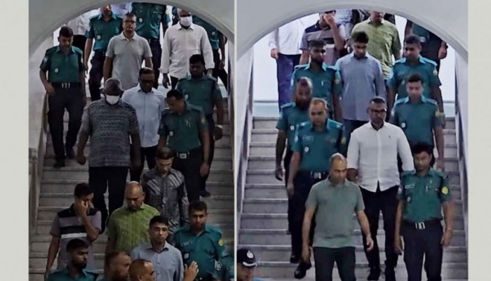 এর আগে সকাল সোয়া ৭টায় তাদের আন্তর্জাতিক অপরাধ ট্রাইব্যুনালে হাজির করা হয়। আদালতের কার্যক্রম শুরু হয় সকাল সোয়া ৮টায়।